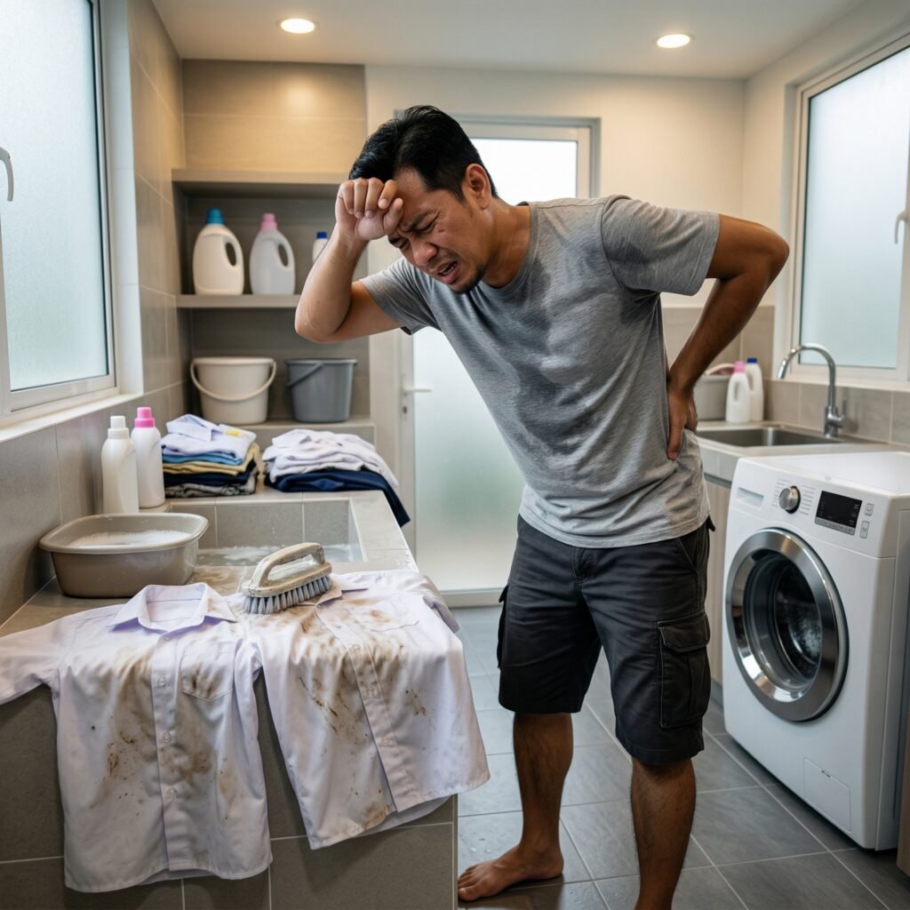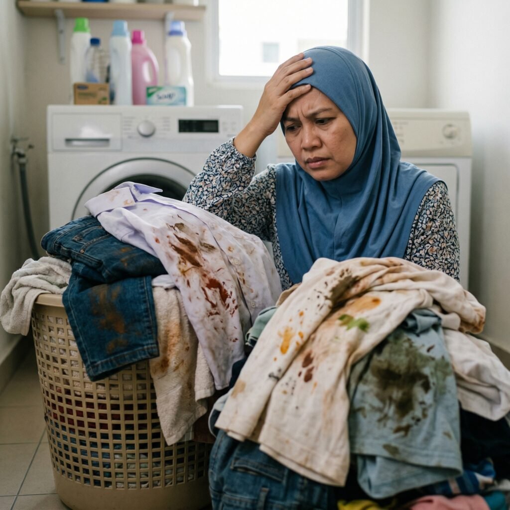 Rasa tak selesa tengok timbunan baju yang penuh dengan kotoran degil