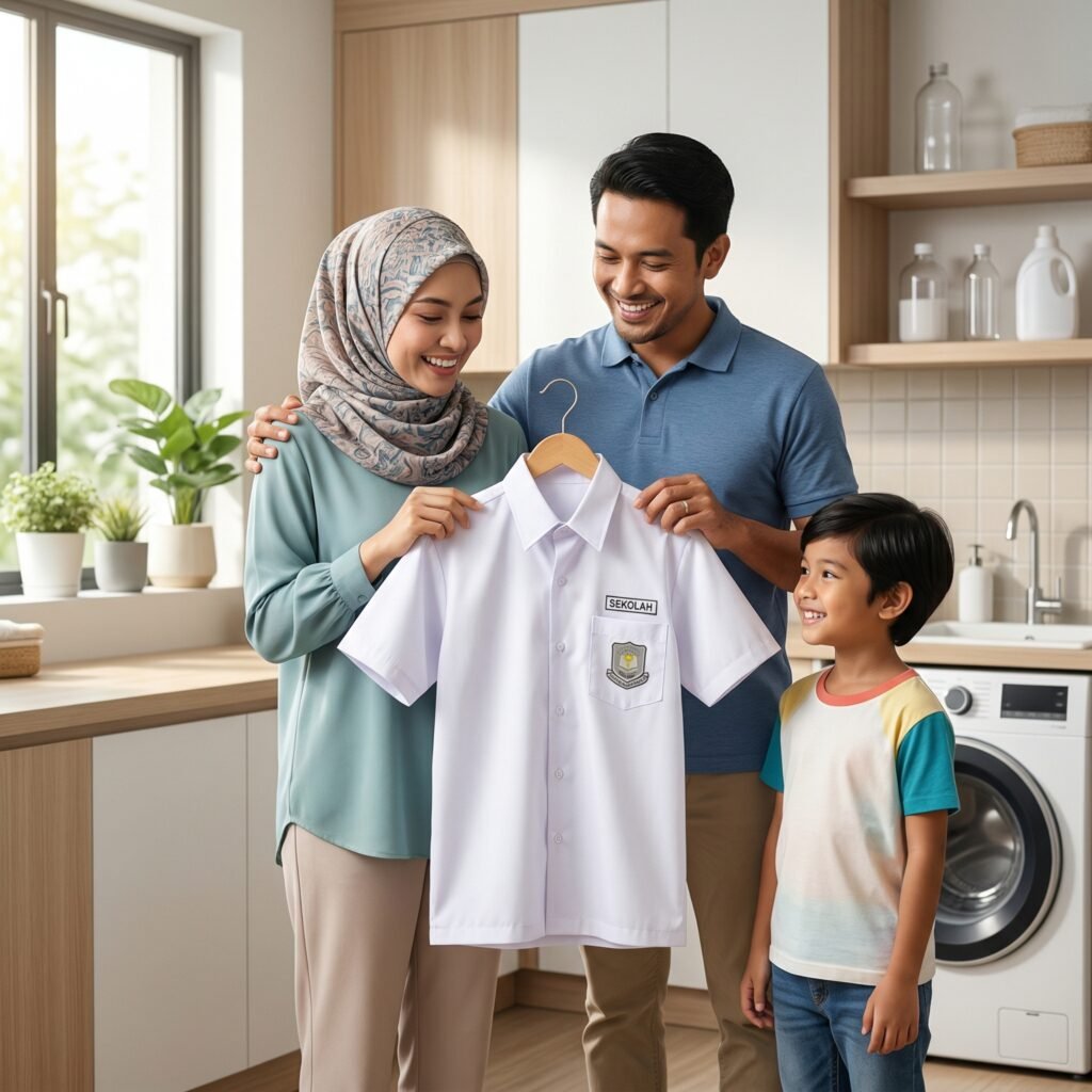 Terpaksa buang baju sekolah yang masih baru disebabkan satu kesan kotoran yang tak boleh hilang.